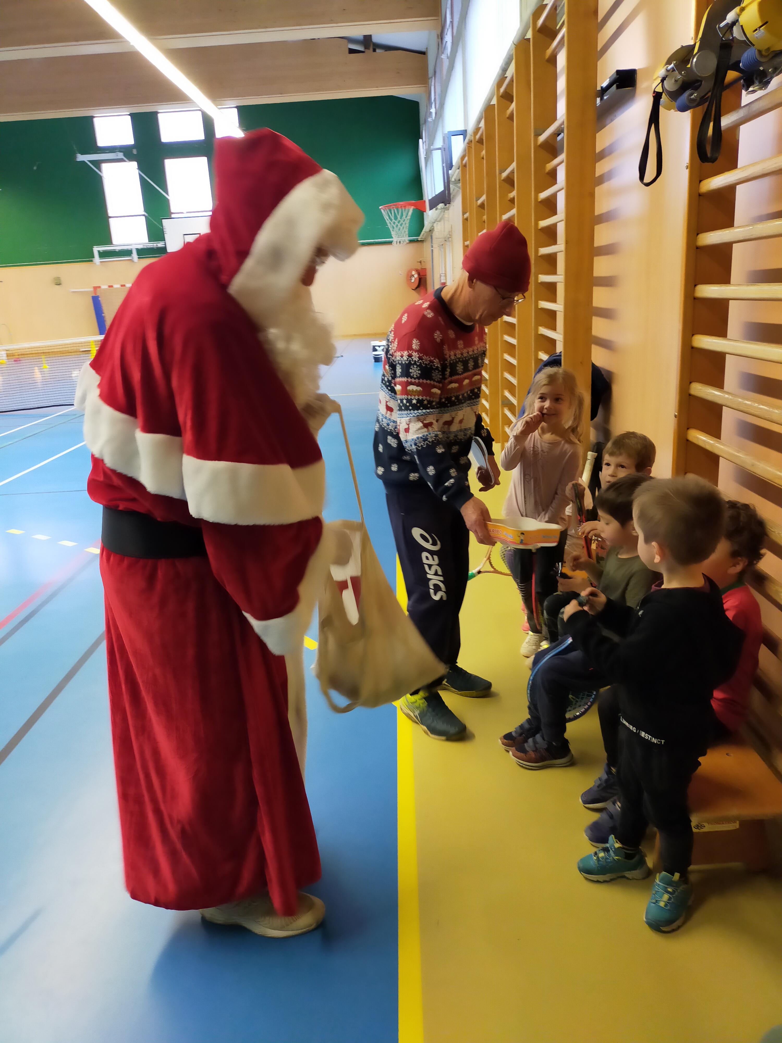 C’est avec émotion que les enfants ont pu voir en avant-première le Père Noël accompagné de son lutin préféré René!! La joie les a fait jouer comme Rapha ou Djoko ou Fédé… 😉
