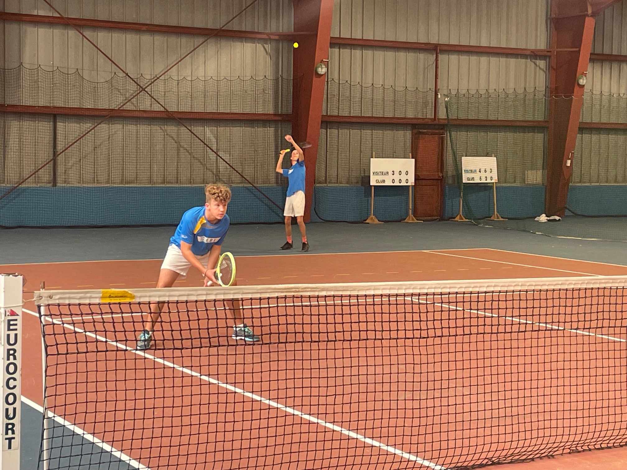 Damien a gagné en simple. Mathis a perdu et ils ont gagné le double décisif.